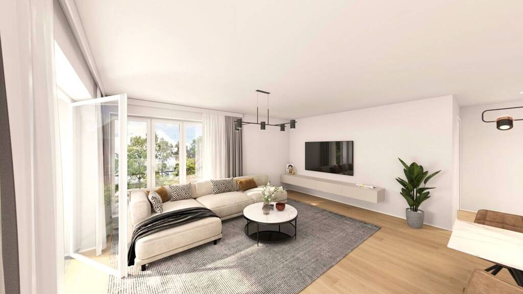 Alle verwendeten Bilder und Visualisierungen sind Beispiele auf Basis der Vorplanung, um Ihnen eine Vorstellung darüber zu vermitteln, wie die Wohnungen eingerichtet aussehen könnten. Die gezeigten Darstellungen können von der späteren Umsetzung abweichen. Während der Bauphase kann es außerdem zu Änderungen kommen, sodass die hier gezeigten Umsetzungs- und Außenansichtsbeispiele von der endgültigen Realisierung abweichen können.