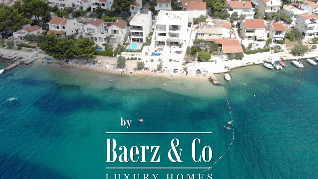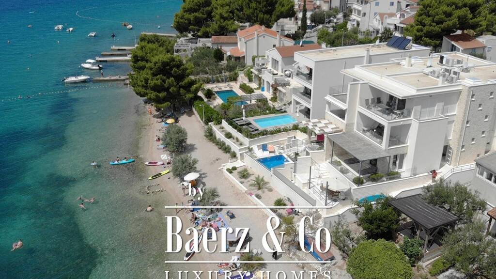 pZaboric, beautiful three-bedroom apartment on the beach, net usable area 121.99 m². the apartment is located on the ground floor of a modern building, first row to the sea. it has one parking space and a large storage room in the basement. the area of the closed space is 93.40 m², the area of the terrace is 15.12 m², and the area of the yard is 62.44 m²./ppthe apartment consists of a living room with a kitchen and a dining room, three bedrooms, one of which has a private bathroom, one separate bathroom, a toilet and a laundry room. the living room opens onto a large covered terrace with a sea view, and from the terrace there are stairs leading down directly to the beach. each room has air conditioning, and the apartment has built-in underfloor heating with a heat pump./ppthe apartment is equipped with top-quality appliances, has a modern custom-made kitchen and designer furniture. it is being sold fully furnished and gives the buyer the opportunity to live on the beach./ppwe are at your disposal for all other information./p