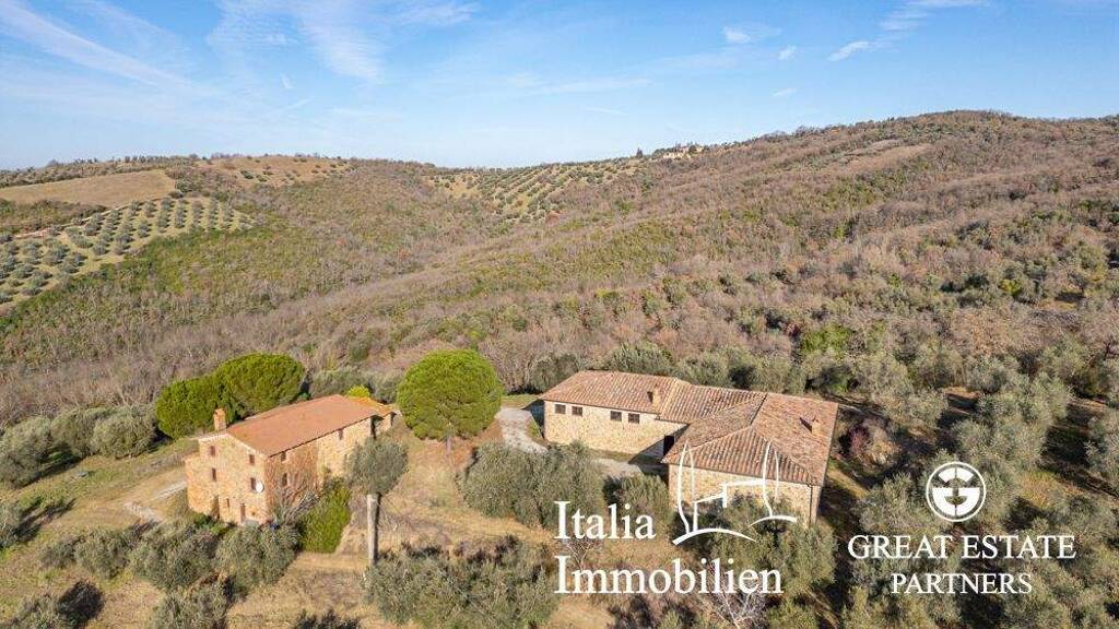 Ein Landgut inmitten von Olivenbäumen mit atemberaubendem Blick auf eines der schönsten Dörfer Italiens - Auf einem Hügel in dominanter Lage befindet erwarten Sie ein charmantes, bewohnbares Bauernhaus, das modernisierungsbedürftig ist, sowie ein komplett renoviertes Gebäude mit einer voll funktionsfähigen Olivenölmühle.
