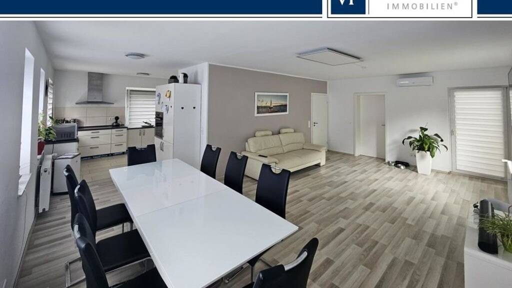 Es teilt sich in zwei separate Wohneinheiten auf, von denen die im Erdgeschoss liegende Einheit bei Bedarf auch wieder über einen separaten Außenzugang betreten werden kann. Mit insgesamt sieben Zimmern bietet das Haus viel Platz für eine große Familie oder für das Wohnen und Arbeiten unter einem Dach.