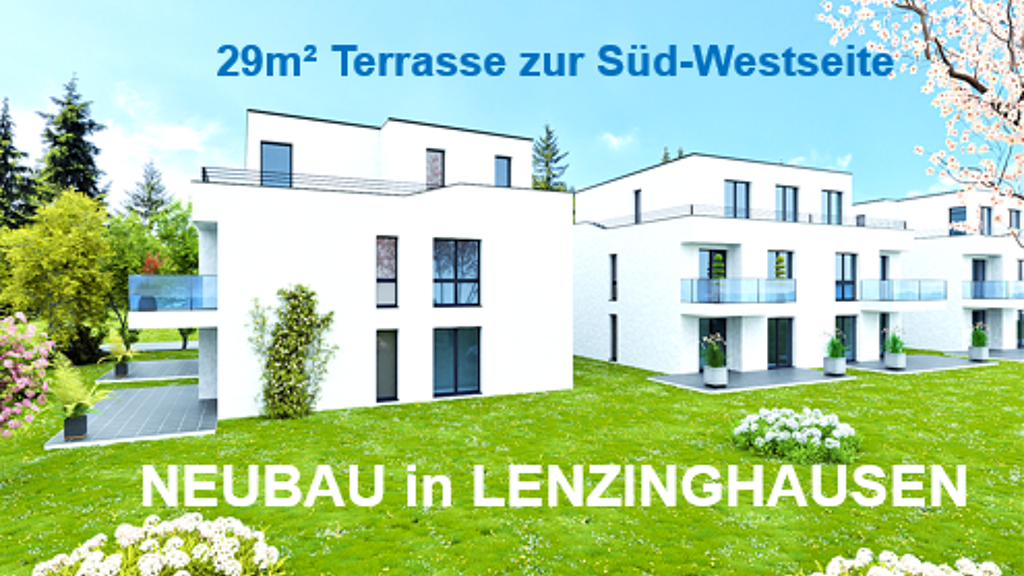 NEUBAU- TERRASSEN- WHG. mit privatem Gartenanteil zur Eigennutzung in Lenzinghausen.