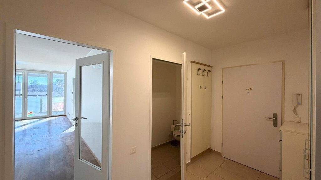 Alle Räume sind zentral begehbar und garantieren somit maximale Flexibilität in der Nutzung. Der großzügige Wohnbereich mit Zugang zur Loggia bildet das Herzstück der Wohnung. Die ca. 17 m² große Loggia lädt zum Verweilen im Freien ein und erweitert den Wohnraum auf ideale Weise.