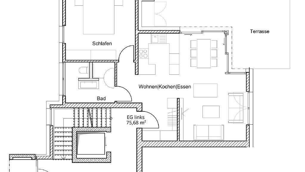 Dieser Wohnungstyp, mit einer Wohnfläche von rund 75 m², befindet sich im Erdgeschoss und ist wie folgt aufgeteilt: