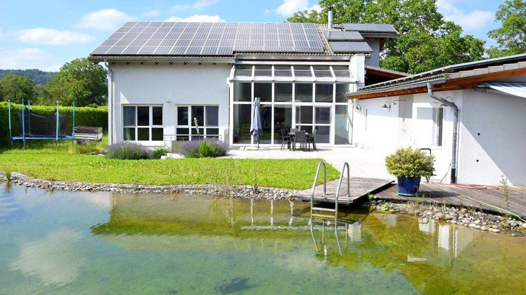 Das Privathaus mit ca. 400 m² Wohnfläche bietet sechs Zimmer, vier Bäder, einen Wellnessbereich und eine Einliegerwohnung. Eine Photovoltaikanlage, Fußbodenheizung und ein Kamin sorgen für nachhaltigen Komfort.
