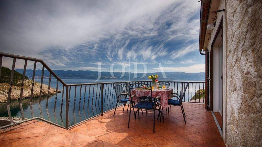 Auf einer Klippe über dem Meer gelegen, ist diese Steinvilla der Traum vieler, die ein Anwesen in einzigartiger Lage mit unschlagbarem Meerblick suchen. Die Villa ist in den Felsen gewoben und hat sich in ihrer Form vollständig an die Umgebung angepasst, die sie umgibt. Deshalb verteilt sich ihre Wohnfläche kaskadenförmig auf drei Etagen, umgeben von Terrassen und einem Garten, auf einer Wohnfläche von 100 m2, bestehend aus insgesamt drei Schlafzimmern, jedes mit eigenem Bad, Meerblick und Ausgang zur Terrasse, ein Wohnzimmer mit einer rustikalen Küche und einem Esszimmer, einem schönen Blick auf das Meer und einem Ausgang zu einer angenehmen Terrasse und einer weiteren Toilette für Gäste. Im Inneren wurde der mediterrane Stil mit rustikalen Details kombiniert und die so erhaltenen und perfekt in den Raum integrierten Naturfelsen vermitteln ein besonderes Erlebnis. Die Villa ist umgeben von zahlreichen Terrassen, einer besonders aussehenden Holzpergola, die dem Raum einen Robinson-Charme verleiht, einem großen Steingrill und zahlreichen Positionen, um die unglaubliche Aussicht zu genießen, die diese besondere Lage bietet. Da sich die Villa auf einer Klippe befindet, die ins Meer stürzt, ist sie von Felsen umgeben und von der gesamten Umgebung hat man einen wunderbaren Blick auf das endlose Blau, den Hafen, den nahe gelegenen Pinienwald und die Riviera Crikvenica-Vinodol. Eine private Steintreppe führt in wenigen Minuten zu einer nur 20 Meter entfernten intimen Bucht direkt unterhalb der Villa. Dieses schöne Anwesen bietet Genuss für alle Sinne, so dass Sie gleichzeitig den Geruch von Meer und Meersalz genießen können, der mit sauberer Luft verbunden ist, begleitet vom frischen Duft der Pinien gegenüber dem Hafen und zahlreichen mediterranen Pflanzen.