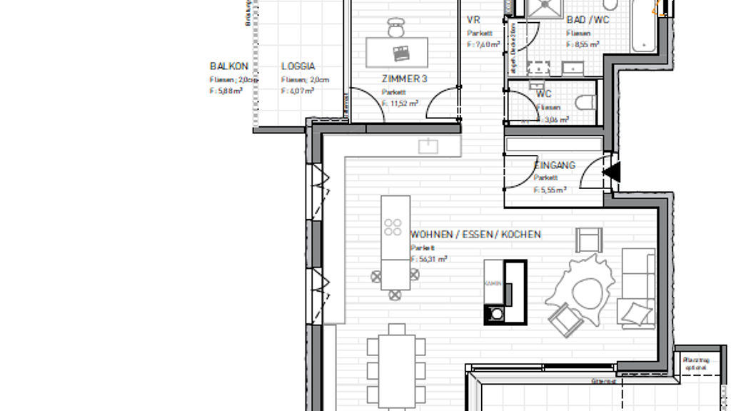 Dieses knapp 125m2 große Penthouse beeindruckt mit einer optimalen Raumaufteilung, die jeden Quadratmeter optimal nutzt. Die großzügige Fläche von über 56m2 umfasst den Wohn und Essbereich, welcher einen geselligen Treffpunkt für die ganze Familie bietet. Hier finden Sie das Highlight der Wohnung, die 41m2 große, südlich ausgerichtete Dachterrasse, welche Ihnen den ganzen Tag über viel Licht und Wärme garantiert. Ein Hoher Wohnkomfort wird Ihnen durch die drei geräumigen Schlafzimmer geboten, welche einen optimalen Rückzugsort erschaffen. Aus dem dritten Schlafzimmer hat man den direkten Zugang zum knapp 10m2 großen Balkon.