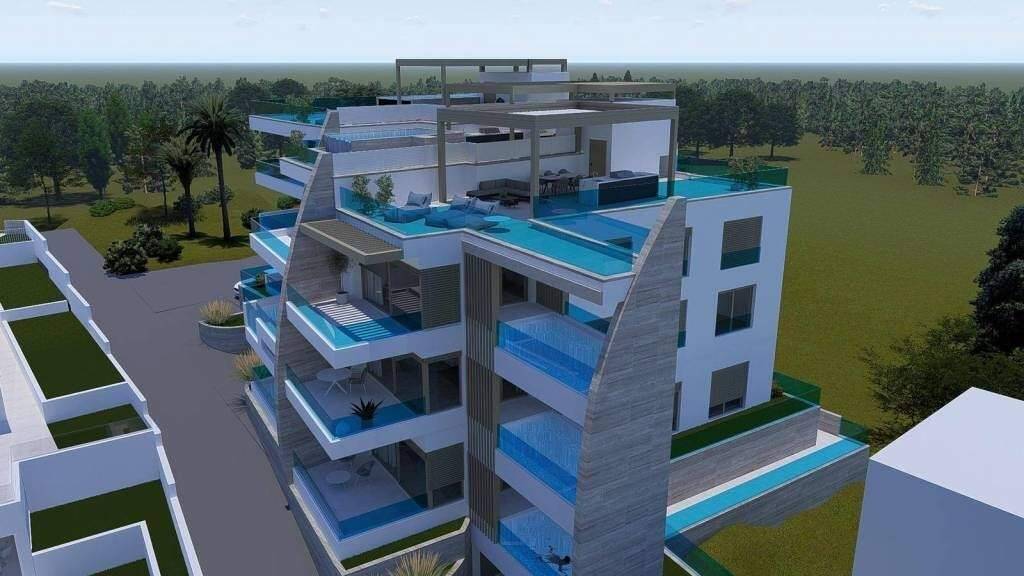 Ein luxuriöses Dreizimmer-Apartment mit Meerblick steht zum Verkauf in einem einzigartigen Neubauprojekt in der Stadt Grebastica in der Nähe von Sibenik. Aufgrund seines besonderen Designs und spektakulären Merkmalen ist dieses Projekt definitiv eine einzigartige Kaufgelegenheit. Was dieses Projekt einzigartig und anders als andere Neubauten macht, ist, dass jeder der Wohnungen neben zusätzlichen Annehmlichkeiten auch über einen eigenen Pool verfügt. Das Gebäude besteht aus einem Keller mit Garagenplätzen und Lagerräumen sowie einem Erdgeschoss und zwei Stockwerken mit insgesamt neun Wohnungen.