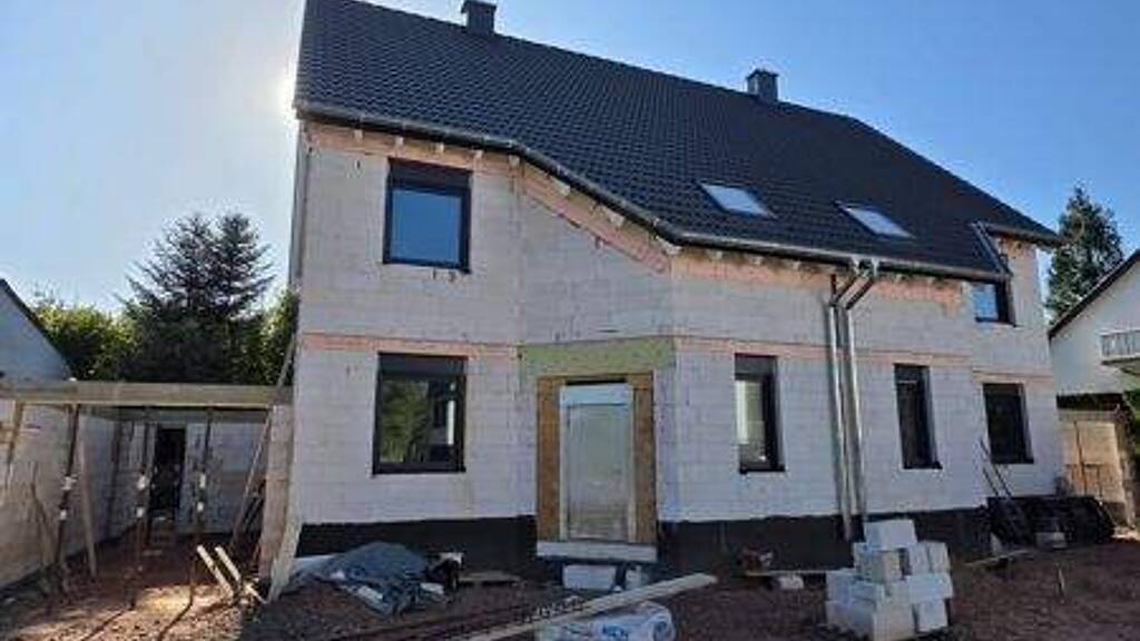 Geplant sind insgesamt 3 Doppelhäuser sowie ein 3 Familienhaus, so dass die Straße nach Fertigstellung ein angenehmes Wohnklima bietet. Die jetzige Halle neben dem aktuellen Rohbau wird abgerissen und bietet den Platz für die weiteren Häuser!