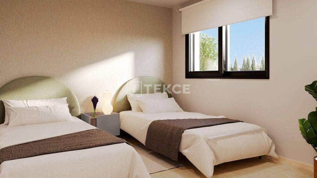 Die Wohnungen sind Teil einer gut durchdachten Anlage, die auf Komfort und Funktionalität ausgelegt ist. Sie verfügt über Schwimmbäder, Whirlpools, landschaftlich gestaltete Grünflächen und Kinderspielbereiche. Die Aufteilung sorgt für ein Gleichgewicht zwischen Gemeinschaftsräumen und Privatsphäre, mit klar gegliederten Zugängen für Fußgänger und Fahrzeuge.