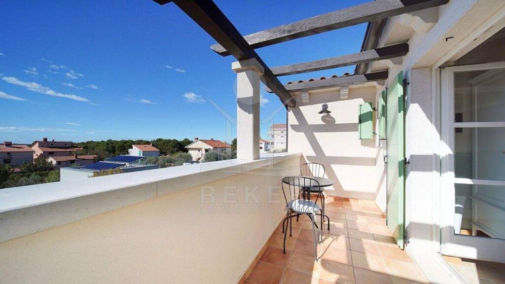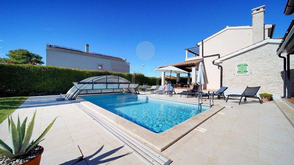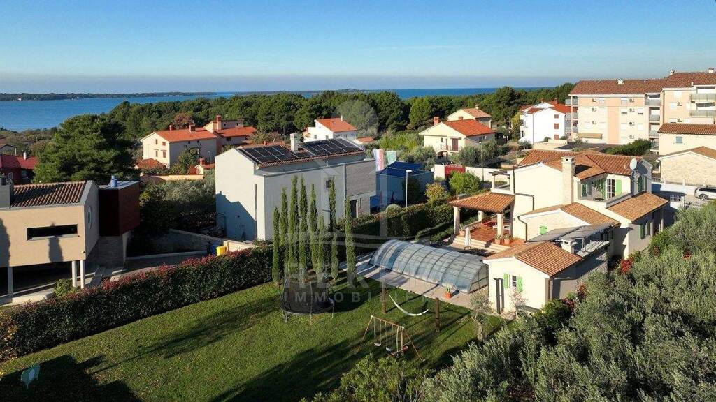 In einem ruhigen Wohnbereich von Fazana, nur rund 600 Meter vom Meer und Strand entfernt, steht diese 2014 erbaute Villa im traditionellen Stil. Sie wohnen angenehm nah an der Küste. Einkaufsmöglichkeiten, Restaurants und Einrichtungen des täglichen Bedarfs erreichen Sie schnell. Die Autobahnauffahrt Vodnjan ist etwa 6 Kilometer entfernt, der Flughafen Pula rund 14 Kilometer. Auf dem Grundstück innerhalb der Bauzone parken Sie drei Fahrzeuge auf eigenem Grund. Ein motorisiertes Einfahrtstor sorgt für zusätzlichen Komfort.