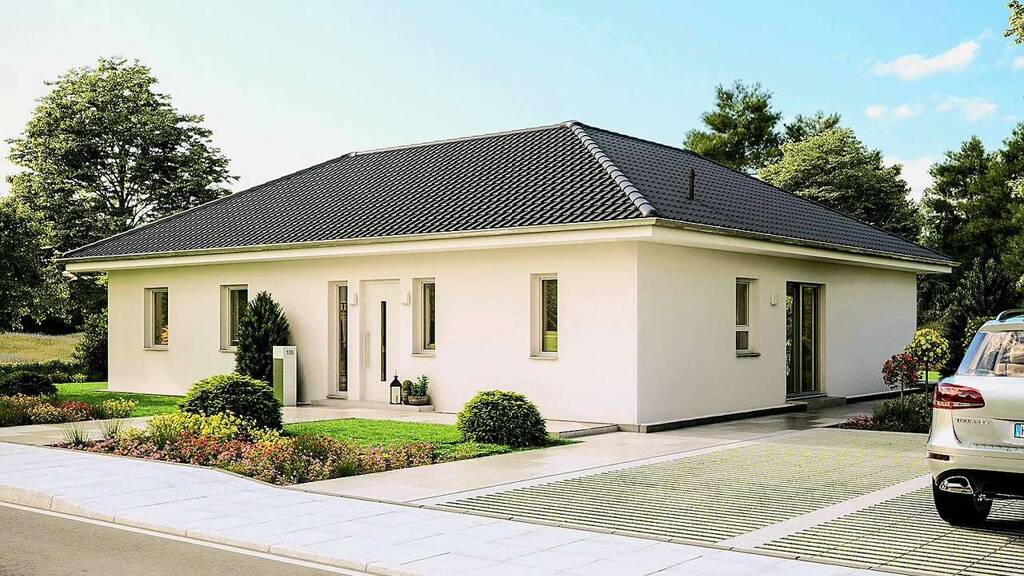 Gönnen Sie sich ein kühles Getränk auf Ihrem Freisitz im Grünen an warmen, sonnigen Tagen oder lassen Sie den Abend gemütlich vorm knisternden Kaminfeuer im offen gestalteten Wohnbereich ausklingen - in diesem Traumhaus ist alles möglich. Mit seiner Nettogrundfläche von 136 m² bietet es Ihnen zudem ausreichend Platz für zwei Kinderzimmer, das gemütliche Schlafzimmer mit direktem Zugang auf die Terrasse sowie ein Wannenbad mit Dusche. Der Bungalow ComfortStyle 13.01 W überzeugt vor allem durch seine elegante Erscheinung sowie die praktische Raumaufteilung, die selbstverständlich auf Ihre persönlichen Wünsche und Bedürfnisse angepasst werden kann, und wird somit allen Anforderungen an gesundes Wohlfühlwohnen von heute - aber auch morgen - stets gerecht. Wie bei jedem unserer vielen Haustypen genießen Sie auch bei diesem attraktiven Haus die unbeschreibliche Leichtigkeit und Großzügigkeit individuellen Wohn-Genießen´s durch unsere serienmäßig höheren Wände.