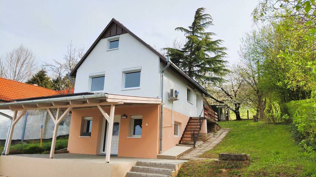 In einer ruhigen, innerörtlichen Lage von Cserszegtomaj, am Ende einer Sackgasse, steht dieses 2026 vollständig renovierte Einfamilienhaus auf einem großzügigen 1.500 m² großen Grundstück zum Verkauf. Im Zuge der Renovierung wurden die Wasser- und Stromleitungen sowie sämtliche Bodenbeläge erneuert, sodass sich die Immobilie in einem modernen und gepflegten Zustand befindet. Das Haus wird voll möbliert verkauft und ist sofort bezugsfertig, wodurch es sich sowohl als Dauerwohnsitz als auch als Investition ideal eignet. Ausstattung und Merkmale: -Voll erschlossen -7 kW Photovoltaikanlage mit Saldo-Abrechnung -Gas-Zentralheizung (Gastherme) -Heiz- und Kühlklimaanlage Raumaufteilung: Erdgeschoss (49 m²): -Wohn- und Essbereich -Küche -Schlafzimmer -Flur -Badezimmer mit Dusche und WC Obergeschoss (36 m², über Außentreppe erreichbar): -Großzügiger Wohn-, Ess- und Küchenbereich -Badezimmer mit Dusche/WC Dachgeschoss (25 m²): -2 Schlafzimmer Außenbereich: -Überdachte Terrasse (15 m²) vor dem Haus -Zusätzliche offene Terrasse -Nebengebäude, ideal zum Ausbau als Sommerküche Die Lage ist perfekt für alle, die Ruhe und Privatsphäre suchen. Gleichzeitig bietet die Immobilie durch ihre Aufteilung auch Potenzial für Mehrgenerationenwohnen oder touristische Vermietung. Hévíz und Keszthely sind in wenigen Minuten erreichbar. Die Daten beruhen ausschließlich auf den Informationen, die uns von unseren Auftraggebern zur Verfügung gestellt wurden. Aus diesem Grund übernehmen wir keine Verantwortung für die Vollständigkeit, Richtigkeit und Aktualität der Daten. Preisänderungen, Datenänderungen sowie ein Zwischenverkauf bleiben vorbehalten; hierfür übernehmen wir keine rechtliche Haftung.