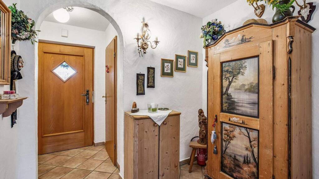 Diese, in einer ruhigen Seitenstraße gelegene Doppelhaushälfte, wurde 1993 auf einem ca. 885 m² großen Grundstück in solider Ziegelbauweise errichtet. Das Grundstück ist ideell geteilt, der Miteigentumsanteil beträgt 1/2 (gem. §8 WEG). Beim Betreten des Hauses fällt sofort der geschickt gegliederte Dielenbereich ins Auge: vorbei an einer Abstellkammer und dem Gäste-WC, gelangt man zunächst in einen großzügig angelegten Garderobenbereich und in die vollausgestattete Küche. Das Wohnzimmer verbindet traditionelle regionaltypische Elemente mit modernem Wohnkomfort. Insbesondere die Holzdecke, der gemütliche Erker und der gemauerte Grundofen schaffen eine einladende, warme Atmosphäre, die sowohl zum Entspannen als auch zum geselligen Beisammensein einlädt. Ein Ort, an dem man das alpine Lebensgefühl in vollen Zügen genießen kann. Im Sommer lädt die Süd-Terrasse zum Essen im Freien ein, im Winter bietet das große Eckfenster im Wohnzimmer einen malerischen Blick auf die verschneite Landschaft. Im Obergeschoss befinden sich drei Schlaf- bzw. Kinderzimmer und ein Tageslichtbad mit Badewanne, Doppelwaschtisch, WC und einer Dusche. Von allen Wohnräumen aus gelangt man auf den Balkon. Das ausgebaute Dachgeschoss, mit zwei weiteren gemütlichen Zimmern und einem Duschbad, eignet sich z.B. hervorragend zur Unterbringung Ihrer Gäste. In einer kleinen Küchenzeile lassen sich im Handumdrehen kleine Mahlzeiten zubereiten. Ein weiteres Highlight befindet sich im Keller: eine finnische Sauna, in der man - besonders an kalten Wintertagen - Entspannung und Ruhe findet. Das Haus wurde von den Eigentümern sehr gut instandgehalten und bietet daher eine hervorragende Grundlage für weitere Modernisierungsmaßnahmen.