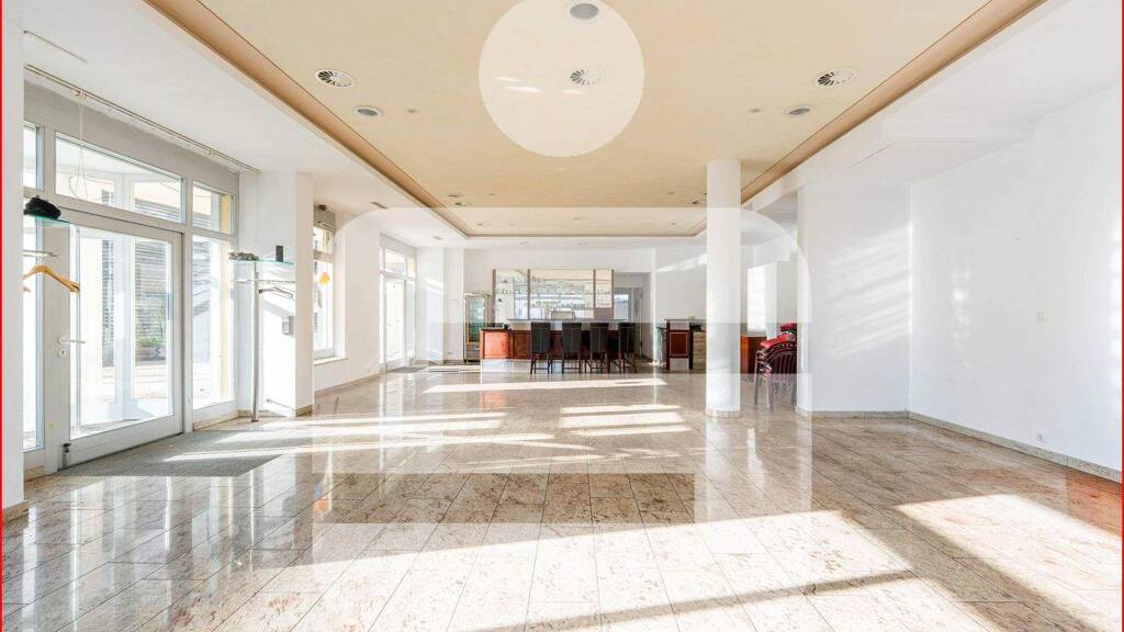 Die großzügige Gesamtfläche von über 197 m² teilt sich funktional in 156 m² Hauptnutzfläche und ca. 41 m² Lager- und Kellerräume auf. Aktuell ist die Einheit für den gastronomischen Betrieb optimiert: Ein ca. 70 m² großer, lichtdurchfluteter Gastraum bildet das Herzstück, ergänzt durch eine rund 50 m² große Küche sowie entsprechende Verkehrsflächen und Sanitäranlagen für Damen und Herren. Dank der überwiegend verglasten Front mit zweifach verglasten Holzfenstern genießen die Räume nicht nur ein helles, einladendes Ambiente, sondern bieten zudem exzellente Werbemöglichkeiten für Ihr Unternehmen.