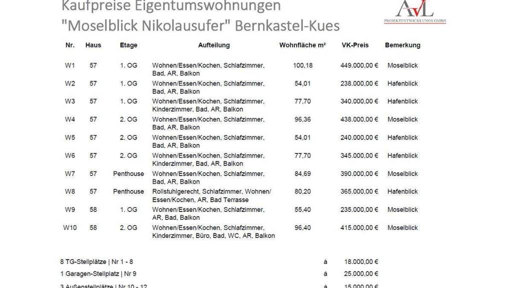 3 Stellplätze, Kaufpreis je: 15.000,00 EUR