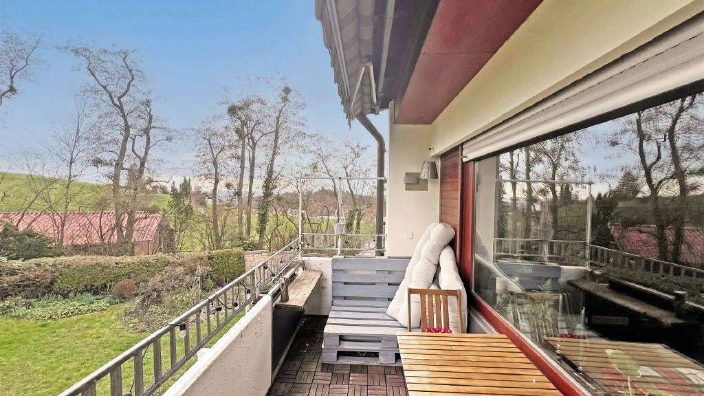 Über ein gepflegtes Treppenhaus gelangen Sie in das 1. Obergeschoss und in Ihre Wohnung. Ein heller Dielen-/ Flurbereich bietet Ihnen genügend Platz für eine Garderobe bzw. eine Sitzbank und führt in alle Räume. Auf der linken Seite befindet sich der großzügige Wohnbereich. Eine große Fensterfront lässt viel Licht hinein und eine Balkontüre führt auf den sonnigen Balkon mit Markise und wunderbarem Blick ins Grüne. Verbringen Sie hier zauberhafte Stunden und Abends bei einem Glas Wein spektakuläre Sonnenuntergänge.