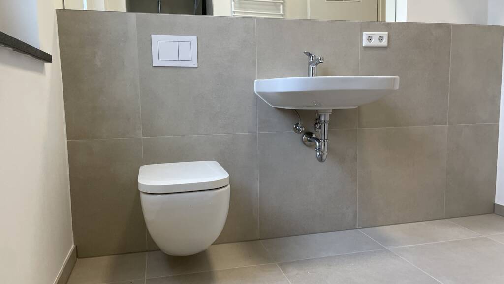 Das großzügige Bad ist ebenfalls komplett neu und wurde sehr modern ausgestattet. Es verfügt über einen Handtuchheizkörper, sowie einer großen Dusche mit Glaswand.