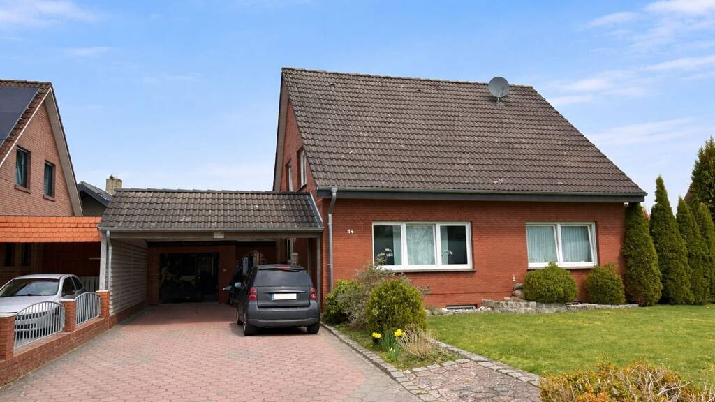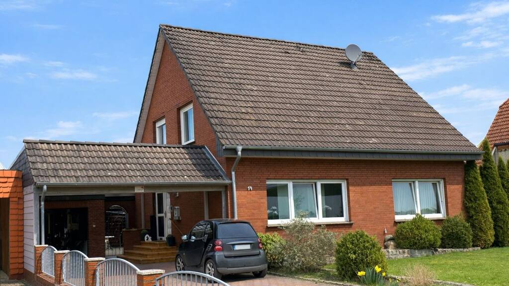 Direkt am Haus befindet sich eine Garage, sowie ein Carport, die ein geschütztes Parken Ihres PKWs ermöglichen und damit den Wohnkomfort erhöhen.