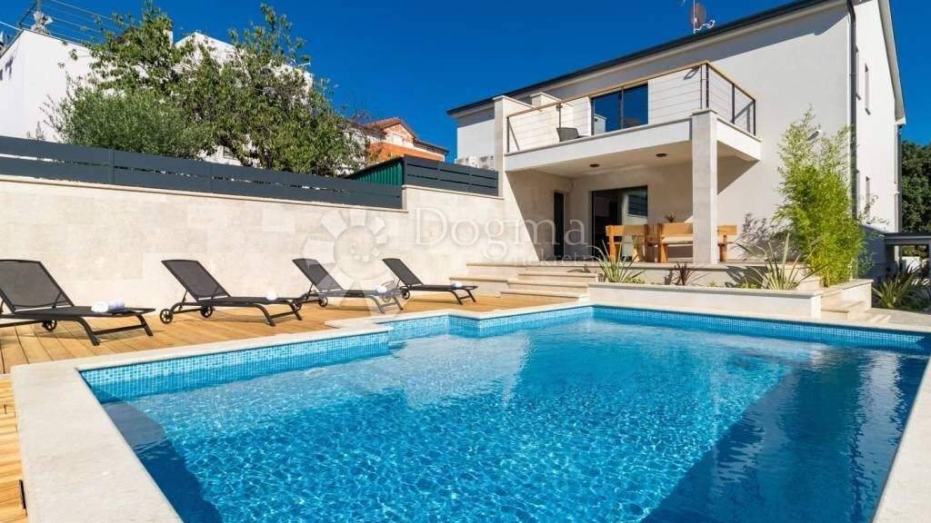 Die Gesamtwohnfläche beträgt 293 m und besteht aus einem Erdgeschoss und einem Obergeschoss. Im Erdgeschoss gibt es eine geräumige, moderne Küche, hervorragend gestaltet und maßgeschneidert, ein geräumiges Wohnzimmer für maximale Entspannung und Genuss in guter Gesellschaft, einen Fitnessbereich und einen Ausgang zu einer großen gepflasterten Terrasse, auf der sich ein 40 m großer beheizter Pool befindet !