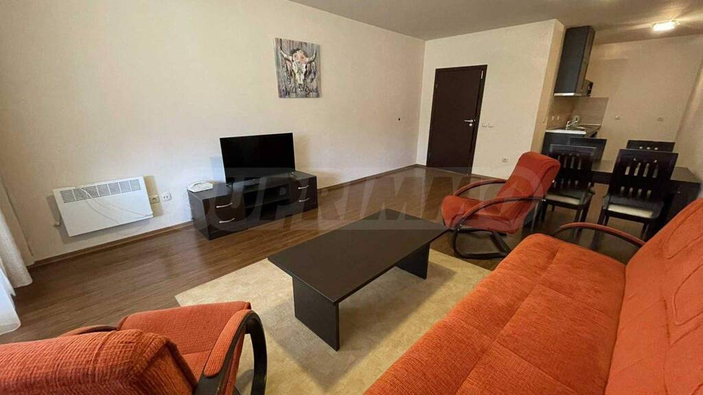 Ein wunderbares Angebot vom Immobilienmarkt - Verkauf einer komplett nach Süden ausgerichteten Einzimmerwohnung mit herrlichem Blick auf das Pirin-Gebirge und die Pisten im geschlossenen Komplex Bansko Royal Towers mit einer 5.000 m2 großen Wiese mit Kinderspielplatz und Außenpool, 100 Meter von der Gondelbahn entfernt.