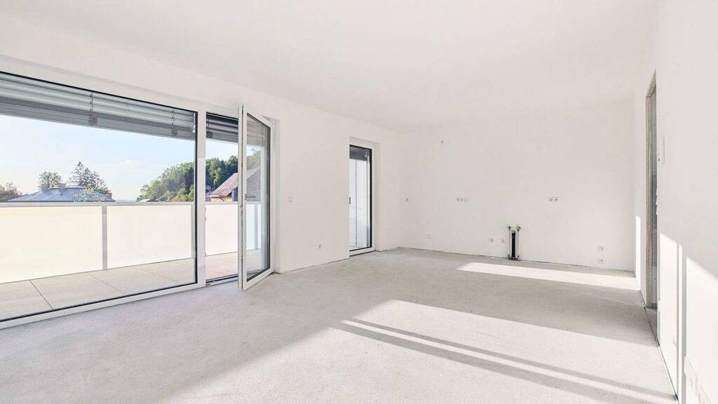 Diese 3-Zimmer-Wohnung im 1. Obergeschoss vereint durchdachte Architektur mit luftiger Wohnqualität. Besonders hervorzuheben ist der großzügige Wohn-/Ess-/Kochbereich mit direktem Zugang zum Westbalkon. Die Wohnung liegt erhöht und öffnet sich nach Westen mit herrlichem Blick ins begrünte Umfeld - ideal für alle, die nach Weite und Licht suchen. Im Edelrohbau angeboten, können Sie Materialien wie Bodenbeläge, Fliesen und Badausstattung individuell wählen. Eine hochwertige Standardausstattung ist im Kaufpreis enthalten, weitere Veredelungen sind auf Wunsch möglich. Zwei Schlafzimmer, ein geräumiger Vorraum, ein Abstellraum und ein elegantes Bad/WC vervollständigen das Raumangebot.