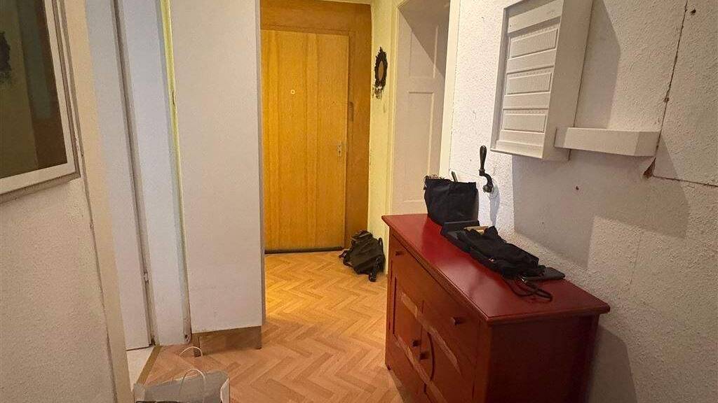 Folgt man dem Flur geradeaus, erreicht man ein weiteres Zimmer mit angenehmer Größe, das sich ideal als Arbeitszimmer, Gästezimmer oder zusätzliches Wohnzimmer nutzen lässt. Von hier aus führt ein Zugang auf der linken Seite in das Schlafzimmer. Dieses überzeugt ebenfalls durch seine gute Raumgröße und bietet ausreichend Platz für ein großes Bett sowie einen Kleiderschrank, ohne beengt zu wirken.