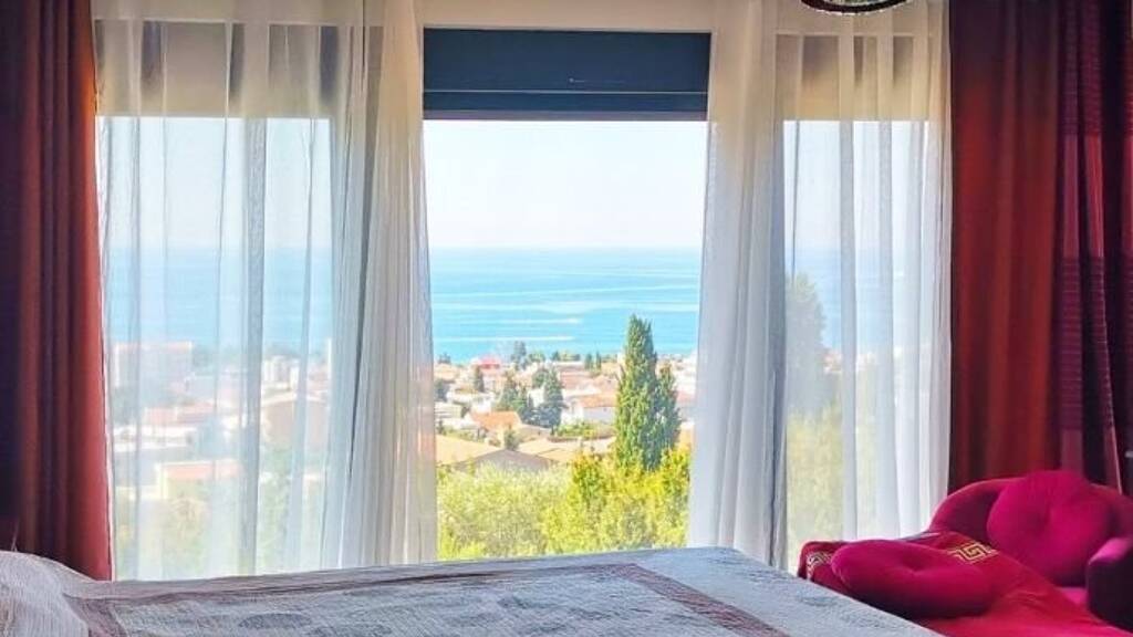 Die Villa verfügt über vier Schlafzimmer, eine geräumige Küche kombiniert mit Wohnzimmer, drei Badezimmer, drei Terrassen. Alle Fenster bieten einen atemberaubenden Blick auf das Meer und die Berge.