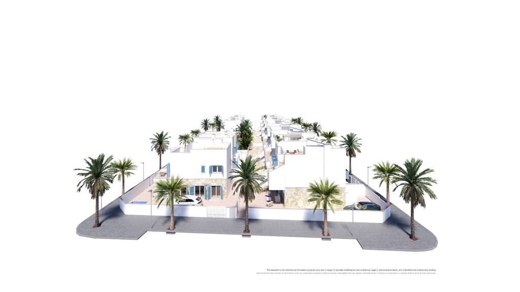 Ein brandneues Projekt mit 3-Schlafzimmer-Apartments, 3-Schlafzimmer-Reihenhäuser und einer freistehenden Villa mit 4 Schlafzimmern in Torre de la Horadada (Alicante), 650 Meter von den schönen Stränden Playa de las Villas und Playa de las Higuericas entfernt und nur 300 Meter vom Einkaufszentrum Plaza Nueva mit zahlreichen Annehmlichkeiten.