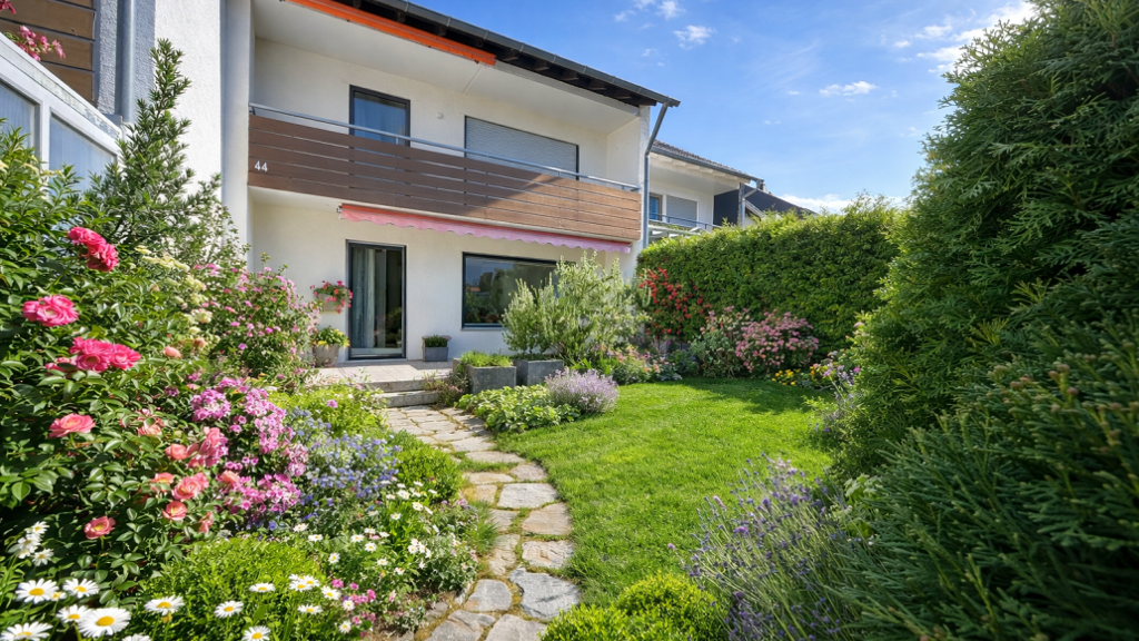 - Privater Gartenbereich - Platz für Terrasse und Freizeit - Gute Besonnung - Familienfreundliche Außenfläche