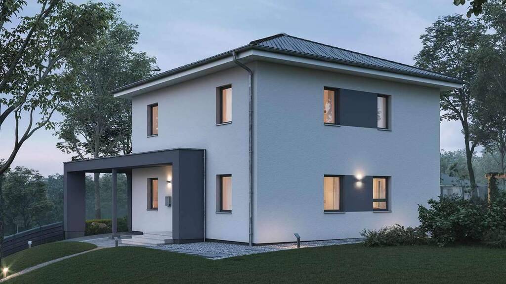 Diese Stadtvilla verkörpert Stil mit zeitloser Eleganz. In der modernen Architektursprache finden sich bei diesem nahezu quadratisch angelegten Haus auf rund 160 m² Grundfläche neben den gewünschten Wohn- und Nebenräumen auch Mehrwertzonen wie eine großzügige Diele. Flexibel planbare Grundrisse sorgen für eine beeindruckende Raumwirkung. Durch die zahlreichen bodentiefen Fenster strömt Tageslicht ins Haus und macht das Wohnen zum Vergnügen. Das Highlight der Stadtvilla LifeStyle 15.01 W ist die nahezu mittig integrierte, gerade Treppe, die beide Wohnebenen auf elegante Weise gliedert. Im Erdgeschoss ergibt sich dadurch ein einladendes Entree mit großer Diele sowie eine offene Wohn-, Ess- und Küchen-Kombination - unter dem Walmdach gruppieren sich Arbeits-, Bad- und Kinderzimmer harmonisch um den Treppenaufgang.
