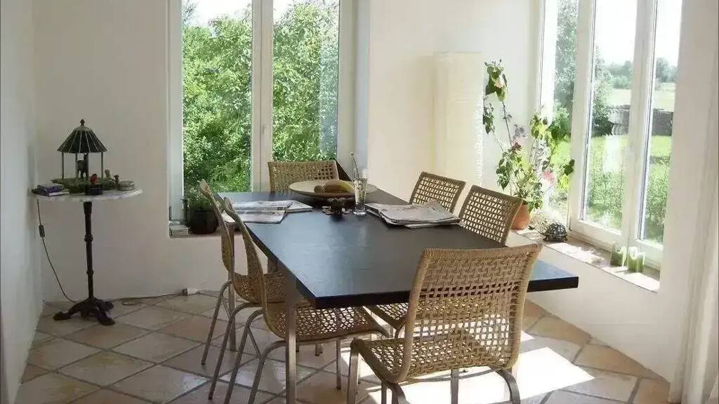 Zum Verkauf steht eine besondere Wohnimmobilie im mediterranen Stil. Der ehemalige Bauernhof wurde 2009 und 2010 total entkernt und baubiologisch saniert und gedämmt - KfW 70 Standard - daher sehr niedrige Heizkosten (Pellets/Solar) und gutes Raumklima. Es handelt sich um ein Wohnjuwel der Extraklasse. Hell, lichtdurchflutet, freundlich. 11 Zimmer, Fußboden und Wandheizung, 2 Bäder plus extra Gästetoilette im EG. 3 Zimmer im EG wurden bisher als Praxis genutzt und sind evtl. untervermietbar. Von der Dachterrasse blicken Sie auf das Fauna/Flora-Habitat Richtung Altmühlsee. Abends können Sie von dort spektakuläre Sonnenuntergänge genießen. 2021 wurde der Garten und die große Terrasse neu gestaltet und ein pflegeleichter Inground-Pool mit Gegenstromanlage errichtet. Er ist ganzjährig nutzbar. Die Überdachung kann man aufschieben, so dass man unter freiem Himmel schwimmen kann.
