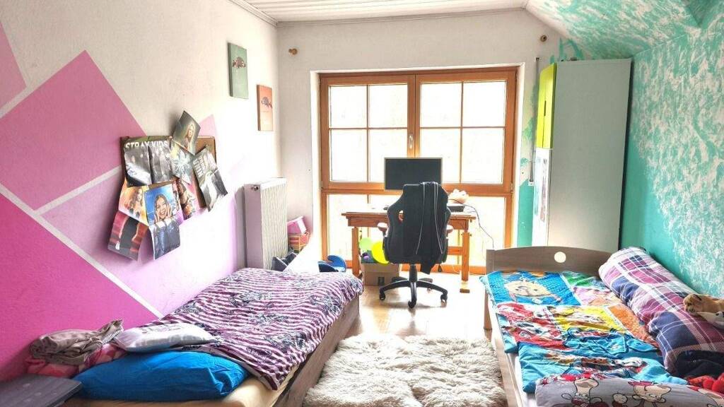 Der ausgebaute Dachspitz, bietet zusätzlichen Platz für Hobby oder Rückzug (wird derzeit von den Kindern genutzt, von dessen Zimmer aus die Treppe nach oben führt. Dieser Bereich erweitert die Nutzungsmöglichkeiten des Hauses erheblich und schafft wertvollen Raum.
