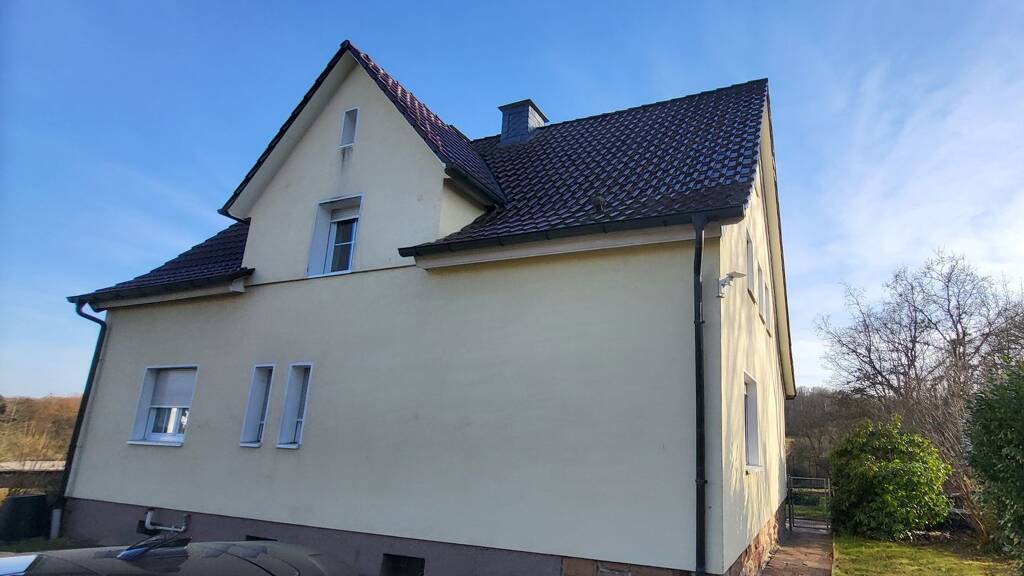 Diese gepflegte Wohnimmobilie ist zum größten Teil unterkellert und besteht aus dem Haupthaus mit Anbau mit je einem Vollgeschoss und einem ausgebauten Dachgeschoss. Zudem kann der Spitzboden zusätzlich ausgebaut werden (ggfs. genehmigungspflichtig). Mit Zugang zum Erdgeschoss kann gleichzeitig eine großzügig gestaltete, zur Hälfte überdachte Terrasse auf 24m² genutzt werden, die auch über das Nebengebäude erreichbar ist. Im Erdgeschoss (ca. 148m² Wohnfläche) befinden sich zwei Küchen (zuletzt 2017 erneuert), die mit übernommen werden können, sowie der Wohn- und Essbereich mit weiteren Wohnräumen für den Schlaf- oder Arbeitszimmerbereich. Zusätzlich sind ein Gäste-WC und ein Bad installiert, sowie eine Diele mit Holzofen. Ein weiterer Kamin steht im Wohnzimmer zur Verfügung. Beide Schornsteine wurden 2017 und 2019 saniert. Die Immobilie bietet somit drei Schornsteine mit einem Niedrigzug. Die vorhandenen Kamine/Öfen verbleiben im Gebäude. Das Dach wurde 2009 erneuert und gedämmt, die Fassade ebenfalls. Im gleichen Jahr sind auch die Fenster im gesamten Gebäude erneuert worden. Im Dachgeschoss (ca. 111m² Wohnfläche) warten zwei Schlafzimmer, ein Abstellraum sowie ein Bad, ein Studio mit Bad und ein Balkon mit ca. 10m² zwischen dem Haupt- und Nebengebäude. Im Kellergeschoss (ca. 90m²) sind das Öllager und die Heizung untergebracht sowie drei weitere Kellerräume. Hier findet sich auch die Elektroverteilung mit einer Verteilung für die LAN-Nutzung, die bereits teilweise auch in einigen Räumen verlegt ist. Ebenso ist ein Glasfaseranschluss vorhanden. Die Elektro- und Wasser-/Abwasser-Installationen wurden im Jahre 2006 erneuert. Parkett wurde 2022 neu verlegt und versiegelt und die neue Heizung wurde im Jahr 2023 installiert.