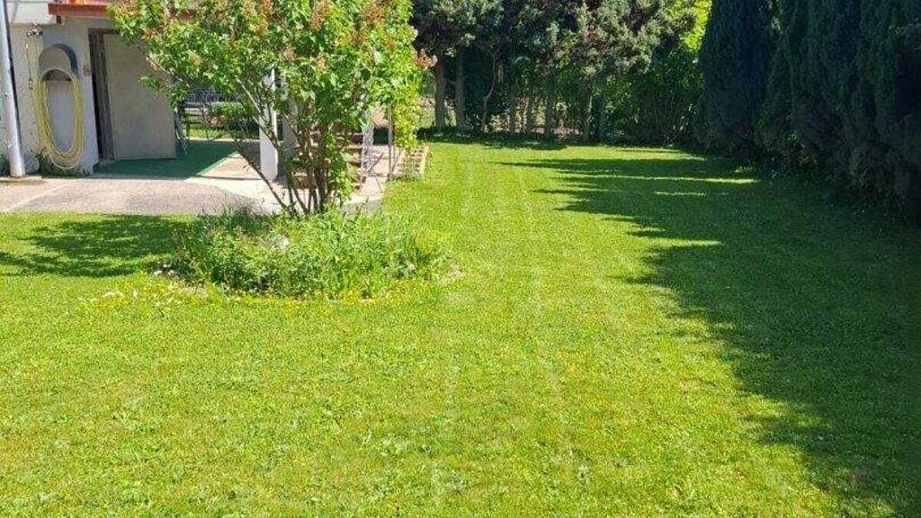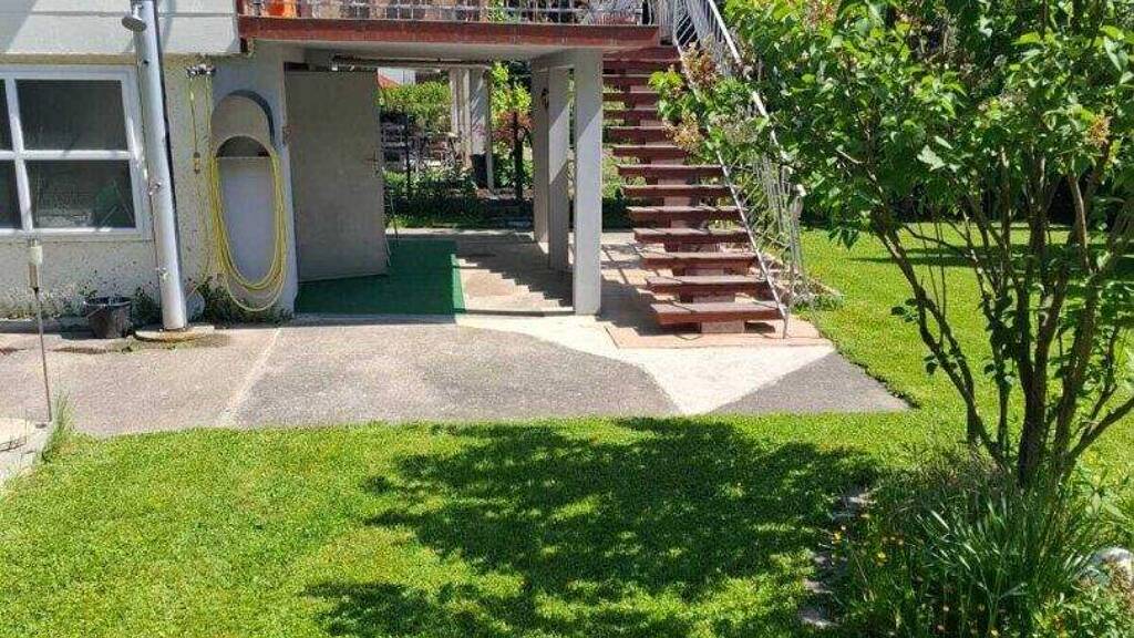 Im unteren Bereich befindet sich ein Raum mit einer Toilette und ein Wachmaschinenanschluss und ein Warmwasserspeicher. Der Garten bietet viel Platz und durch das herrliche Grün ein wahrer Energiespender.