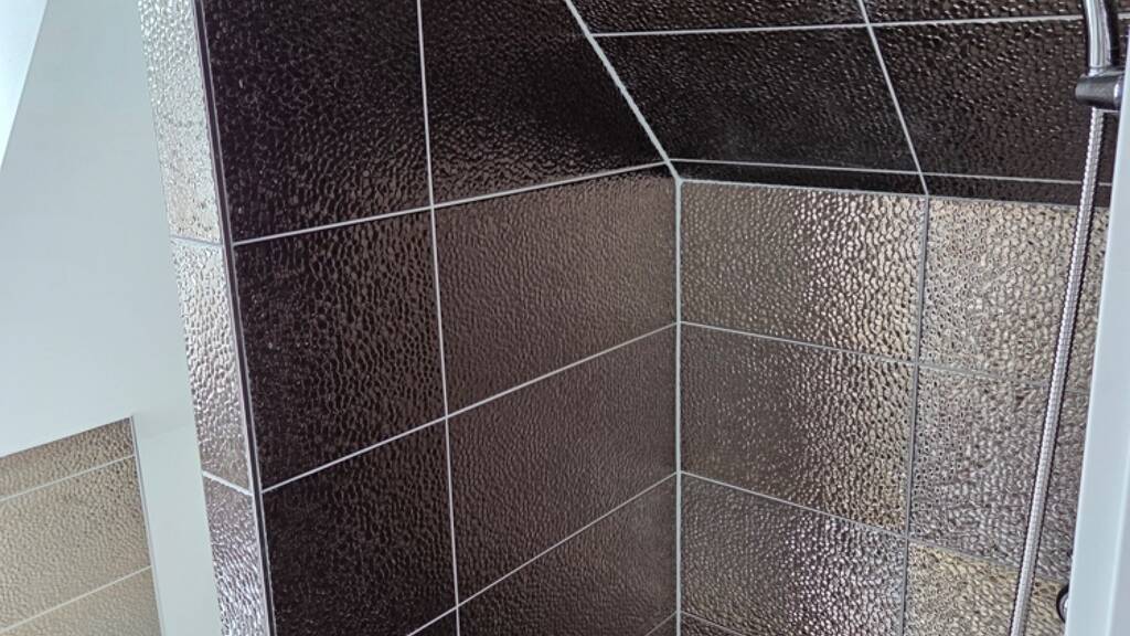 Zwei elegante Tageslichtbäder mit bodengleichen Duschen und Badewanne