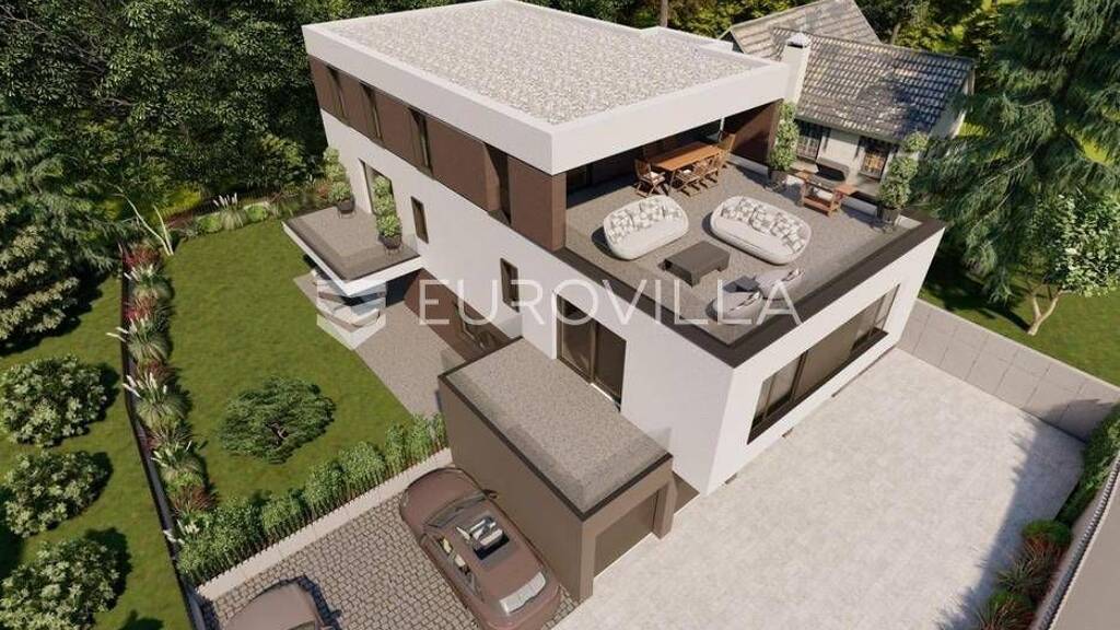 Luksuzan stan u novogradnji - Grgicev put, prizemlje, 98.81m²Na mirnoj i zelenilom okruzenoj lokaciji, svega nekoliko minuta od centra grada, smjestena je moderna stambena zgrada s ukupno cetiri stana, gradena prema najvisim standardima suvremene gradnje. Useljenje je planirano u jesen 2026. godine.Stan se nalazi u prizemlju zgrade i ima ukupnu neto korisnu povrsinu od 98.81m². Odlikuje se iznimnom kvalitetom izvedbe, pametnim rasporedom prostorija i nevjerojatnim pogledom na grad Zagreb.Raspored stana:Ulazni hodnik / predprostorProstrani dnevni boravak s kuhinjom i blagovaonicomDvije spavace sobeDva WC-aBalkon s pogledom na gradloggiavrt 100 m2Parkirna mjesta :Garazno mjestoVanjsko parkirno mjestoStan se prodaje opremljen vrhunskim materijalima i opremom:Protuprovalna ulazna vrataPlinsko etazno grijanjeKlima uredaji Mitsubishi ili SamsungParket I. klaseKvalitetna keramika i sanitarije modernog dizajnaDodatna pogodnost - dizajner interijera ukljucen u cijenu stana:Kupci stana ostvaruju suradnju s profesionalnim dizajnerima interijera iz tvrtke Nextdoor Interijeri, koji ce vas voditi kroz cijeli proces uredenja - od odabira materijala (keramika, parket), do mogucih izmjena u instalacijama i personalizacije prostora.Lokacija:Mirna ulica bez prometa200 metara od setnice koja vodi prema SljemenuBlizina okretista Crnomerec i svih vaznih sadrzajaSpoj prirode, privatnosti i urbanog zivotaZa dodatne informacije, tlocrt stana ili dogovor oko razgledavanja, slobodno se obratite putem poruke ili poziva.... Vise na eurovilla.hr, ID: 106795