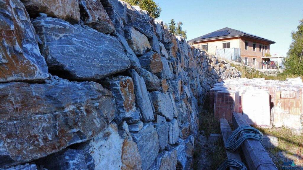 * Sehr solide Stützmauer aus Kalk-Glimmerschiefer