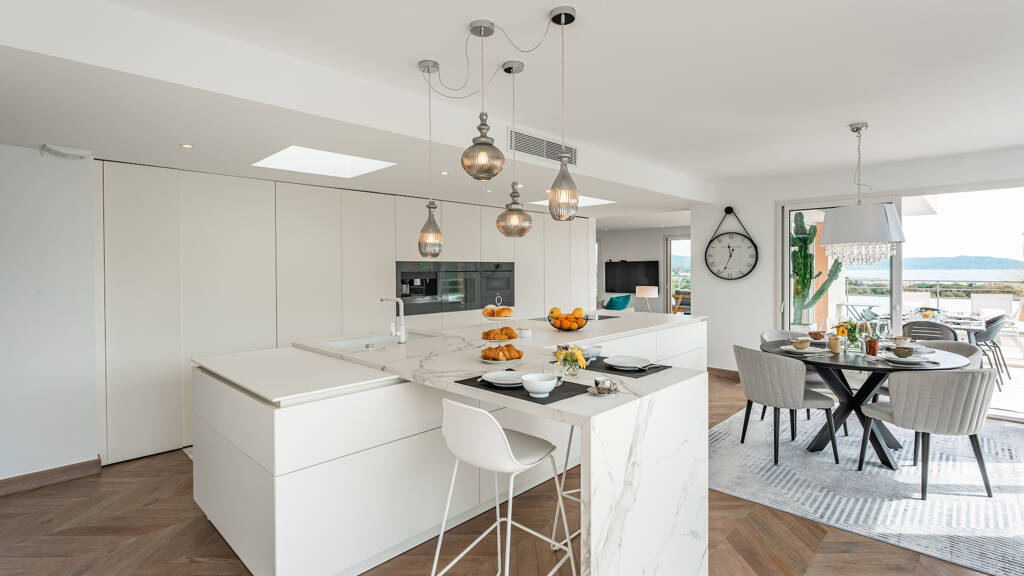 Ideally located in a recent 2021 residence, this rooftop villa offers an area of 147.05 m2 with a terrace of approximately 60 m2 with several exposures.
