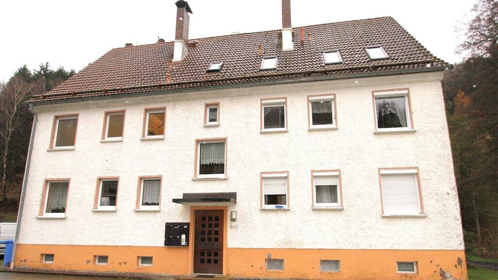 Mitten im Herzen von Schönbrunn befindet sich dieses attraktive, freistehende Mehrfamilienhaus in ruhiger Lage. Die hervorragende Infrastruktur ermöglicht kurze Wege zu allem, was man im Alltag braucht: Ärzte, Grundschule und Kindergarten, Supermarkt, Tankstelle oder auch das Terrassenbad sind in wenigen Minuten zu Fuß oder mit dem Auto erreichbar. Zum Verkauf steht eine ansprechende 3-Raum Wohnung im Obergeschoss. Auf gut 59 m² erwarten Sie ein großes Wohnzimmer, eine Küche, ein Badezimmer mit Wanne, WC und Waschbecken, ein Schlaf- und ein Arbeits- oder Kinderzimmer. Die hellen, freundlich gestalteten Räume schaffen eine angenehme Wohnatmosphäre und bieten eine ideale Kombination aus Komfort, Funktionalität und zentraler Lage. Trotz der unmittelbaren Nähe zum Ortszentrum genießen Sie hier eine ruhige Wohnlage. Das vierstöckige Mehrfamilienhaus überzeugt durch seine solide Bauweise. Nach kleinen Renovierungsarbeiten ist die Wohnung sofort bezugsfertig. Zusätzlich kann ein ca. 1.200 m² großes Gartengrundgrundstück mit Schuppen dazu erworben werden. Preis VB **Geschossaufteilung** *Obergeschoss* Flur, Arbeits-, Gäste- oder Kinderzimmer, Schlafzimmer, Bad, Küche, Wohnzimmer