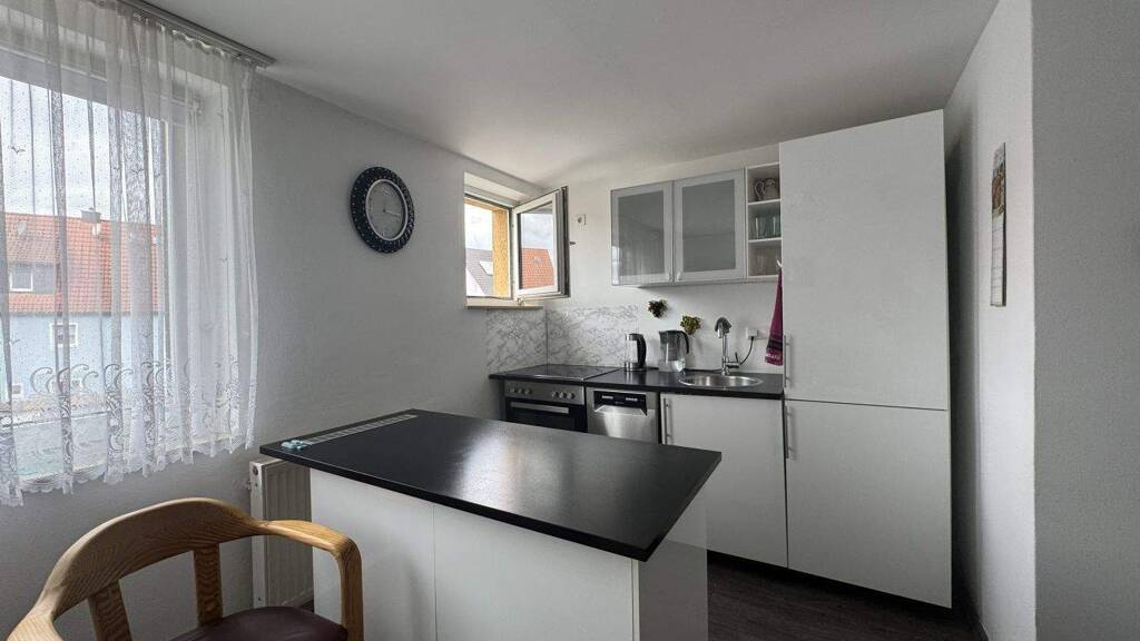 Die Wohnung befindet sich im 1. Obergeschoss und besticht durch ihre 2,5 Zimmer. Vom zentralen Flur aus erreichen Sie jeden Raum. Das Bad ist modern und geschmackvoll ausgestattet und verfügt über eine Dusche, WC und Fenster. Auch die Waschmaschine findet hier ihren Platz unter der Gasetagenheizung. Zentraler Punkt ist die offene Wohnküche sogar mit Kücheninsel. Das halbe Zimmer eignet sich z. B. als kleines Kinderzimmer oder Büro. Im geräumigen Schlafzimmer hat auch ein großer Kleiderschrank Platz.