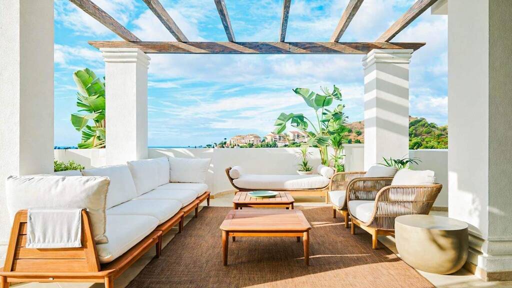 Elegantes Duplex-Penthouse mit zwei Schlafzimmern, zwei Bädern und separatem Gästebad in einer umzäunten Anlage im erhöhten Viertel von Nueva Andalucía. Diese ruhige Umgebung bietet einen Panoramablick aufs Meer und liegt dennoch nur wenige Minuten vom Puerto Banús, Marbellas Golden Mile und dem renommierten Golf Valley entfernt. Auf zwei Ebenen verteilt und durchdacht gestaltet, trennt das Layout soziale von privaten Bereichen. Die Hauptetage verfügt über ein einladendes Entréebereich, einen hellen offenen Wohn- und Essbereich, der mit einer voll ausgestatteten Küche verbunden ist. Diese Etage umfasst zudem ein Gäste-WC und das Hauptschlafzimmer mit eigenem Bad, was eine praktische und komfortable Alltagsnutzung ermöglicht. Große Türen öffnen sich zur großzügigen Hauptterrasse, die viel Platz für Outdoor-Essen, Entspannung und den Panoramablick aufs Meer bietet. Eine interne Treppe führt zur oberen Etage, wo sich das zweite Schlafzimmer für zusätzliche Privatsphäre befindet und mit eigenem Bad ausgestattet ist. Diese Ebene bietet zudem direkten Zugang zu einer weiteren privaten Terrasse, ideal als abgeschiedene Sonnen- oder Chill-out-Area. Die Doppel-Terrassen-Konfiguration verstärkt das Raumgefühl und ermöglicht unterschiedliche Outdoor-Umgebungen im Tagesverlauf. Die Immobilie wurde auf hohem Standard aufgewertet, mit LED-Beleuchtung, hochwertigen Oberflächen und einer voll ausgestatteten Küche mit Siemens-Geräten. Die Wohnung umfasst außerdem einen privaten Parkplatz und einen Abstellraum, was sowohl dauerhaftes Wohnen als auch Feriennutzung erleichtert. Die Anlage verfügt über hervorragende gemeinschaftliche Einrichtungen, darunter zwei Outdoor-Schwimmbäder, umgeben von bepflanzten tropischen Gärten, ein voll ausgestattetes Fitnessstudio und eine gemeinschaftliche Chill-out-Area, die darauf ausgelegt ist, die beeindruckende Aussicht zu maximieren. Der geschlossene Komplex bietet Sicherheit und eine friedliche Wohnatmosphäre. Gelegen in einer der wenigen Gegenden von Nueva Andalucía, die Panoramablick aufs Meer mit der Nähe zu Puerto Banús und Marbellas Hauptattraktionen verbinden, stellt dieses Duplex-Penthouse eine außergewöhnliche Chance als Hauptwohnsitz oder luxuriöse Ferienimmobilie dar. Für weitere Informationen oder einen Besichtigungstermin.