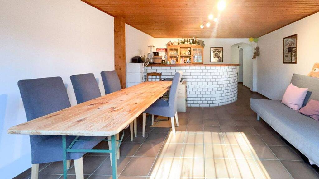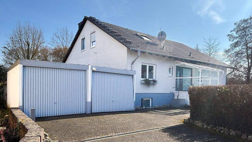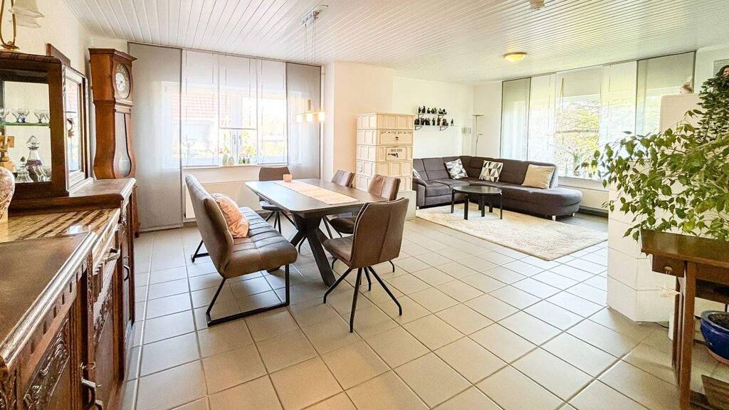 Das lichtdurchflutete Einfamilienhaus wurde 1979 in massiver Bauweise errichtet und bietet ca. 121 m² Wohnfläche auf einer Ebene. Herzstück ist das großzügige Wohn- und Esszimmer mit Kachelofen und direktem Zugang zur Terrasse. Ergänzt wird das Raumangebot durch Schlafzimmer, Kinderzimmer, offene Küche, Gästezimmer, Bad und Gäste-WC. Das ausgebaute Dachgeschoss bietet zusätzliche Nutzungsmöglichkeiten. Garten, Doppelgarage und zahlreiche Modernisierungen runden das Angebot ab. Weitere Informationen finden Sie im Exposé.