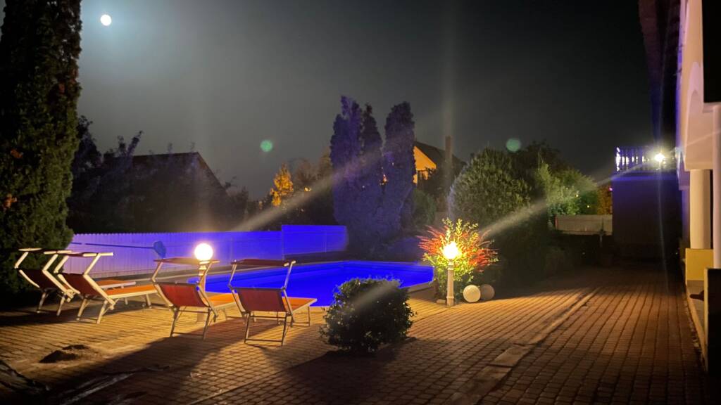 Die Villa hat eine Sauna, eine Garage,3 Stellplätze, einen Holzkamin, einen Kachelofen und eine überdachte Terrasse. Zwei Appartements haben eine Terrasse.
