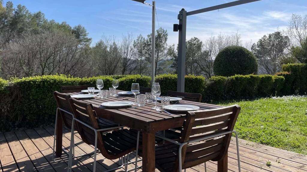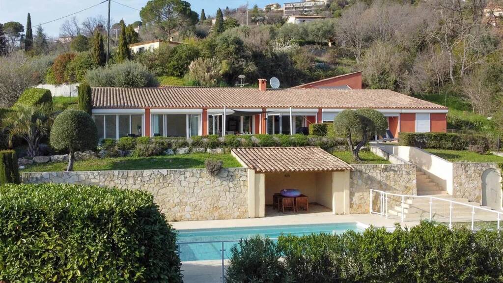 In a quiet area, a few steps from the village of Montauroux, discover this modern single-storey villa facing south on a land of 2000 m2, offering a nice view.