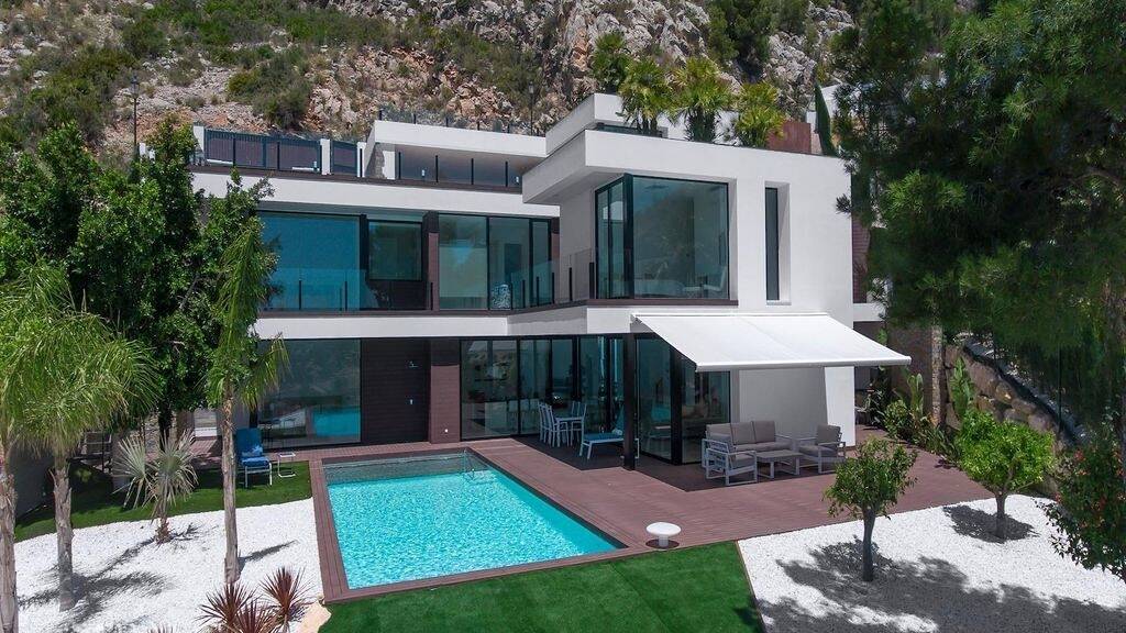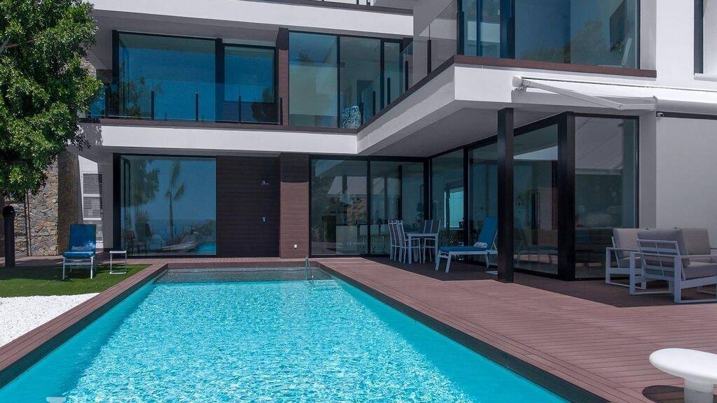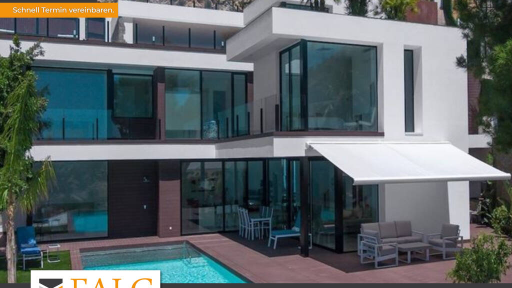 Diese atemberaubende Villa bietet einen luxuriösen und geräumigen Rückzugsort mit akribischer Liebe zum Detail und Architektur, die den Panoramablick maximiert. Mit vier Schlafzimmern, jedes mit eigenem Ankleidezimmer, Bad und separatem WC, zeichnet sich dieses Anwesen durch seinen Komfort und seine Eleganz aus. Das Hauptwohnzimmer ist ein heller und luftiger Raum, der sich harmonisch in die Einbauküche einfügt und eine einzigartige Atmosphäre mit atemberaubender Aussicht schafft. Die Villa verbindet sich optisch und räumlich auf allen Etagen und schafft ein Gefühl von Leichtigkeit und Komfort im ganzen Haus. Das Grundstück des Anwesens bietet großzügigen Platz für Fahrzeugparkplätze, die sich bequem auf Straßenniveau befinden. Darüber hinaus verfügt es über eine überdachte Garage auf der unteren Ebene mit Platz für bis zu 3 Autos, und das Dach des Hauses wurde so konzipiert, dass es als zusätzlicher Parkplatz für 2 bis 3 Autos fungiert. Ein außergewöhnliches Merkmal dieser Villa ist der gläserne Aufzug, von dem aus Sie die herrliche Aussicht auf das Mittelmeer bewundern können, während Sie sich auf dem Grundstück bewegen. Die Außenbereiche sind ebenso beeindruckend, mit Innen- und Außenterrassen sowie einem Swimmingpool, der Ihnen die Möglichkeit gibt, das mediterrane Klima in vollen Zügen zu genießen. Darüber hinaus verfügt das Haus über einen Spa- und Entspannungsbereich mit Sauna und Whirlpool, damit Sie sich bequem von zu Hause aus verwöhnen und entspannen können.