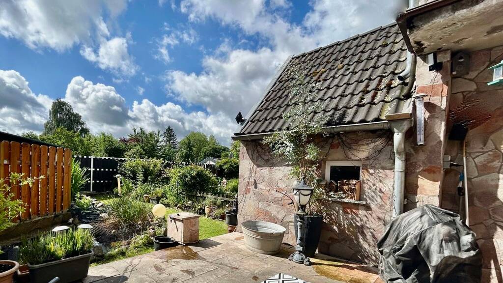 Im Erdgeschoss, des 1922 erbauten und 2003 sanierten Hauses, befindet sich ein geräumiges Wohnzimmer, mit Ausblick auf den schönen Garten. Vom Wohnzimmer aus gelangt man in den charmanten Garten, mit kleinem Teich, der zum Entspannen einlädt. Eine große Terrasse sorgt für gemütliche Stunden im Freien, in welcher man die Sonne genießen kann. Desweiteren finden Sie im Erdgeschoss eine große Einbauküche, welche Ihnen genügend Platz bietet um mit Ihrer Familie zu speisen. Zusätzlich finden Sie hier eine Gäste Toilette.