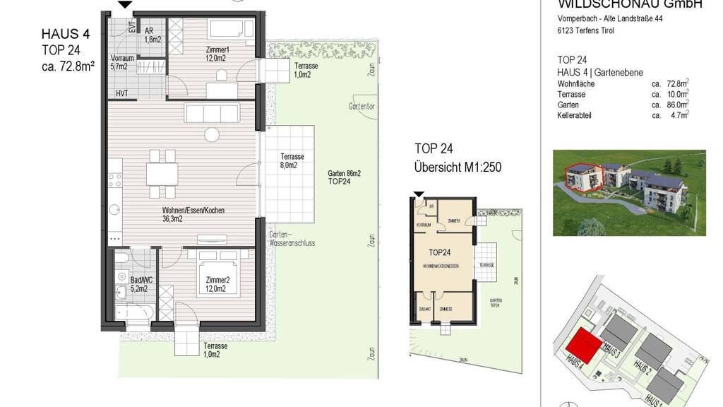 Anzahl Terrassen: 1, Balkon-Terrassen-Fläche: 10,00 m², Kellerfläche: 4,70 m², Bundesland: Tirol, 4 Etagen, Wohnungsnr.: Top 24