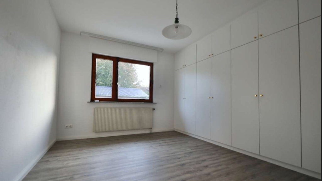 Der Flur im Erdgeschoss, das Wohnzimmer sowie das Esszimmer sind mit modernen, großformatigen Fliesen ausgestattet. Die weiteren Wohnräume verfügen über einen pflegeleichten Laminatboden. Die Treppe zum Obergeschoss sowie der Flur im oberen Geschoss sind mit Auslegware versehen. Eine Fußbodenheizung ist vorhanden und sorgt für ein angenehmes Raumgefühl. Alle Wände sind verspachtelt, und die Holzfenster sind mit elektrischen Jalousien ausgestattet. Die Deckenhöhe beträgt ca. 2,51 m.