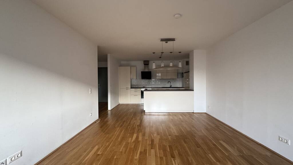 Der helle Wohnraum mit offenen Kochbereich (ausgestattet mit einem Backofen, Herd, Kühlschrank mit Gefrierfach, Geschirrspüler) bildet das Herzstück der Wohnung und schafft ein angenehmes Wohnambiente.