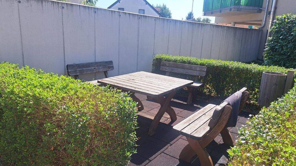 Der kleine grüne Garten mit Sitzmöglichkeit kann mitbenutzt werden. PKW-Abstellplätze können um ca. € 20,- (Stand: Juli 2025) pro Platz angemietet werden